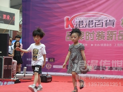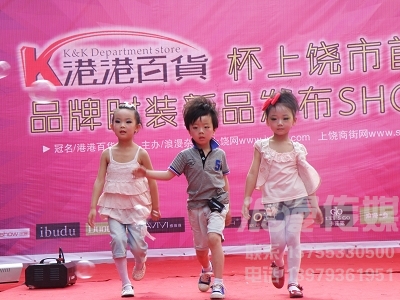 2010.5.29-30日,由《浪漫》雜志舉辦的“港港百貨”杯上饒市首屆品牌時裝新品發(fā)布SHOW,在上饒市步行街舉行,本次活動得到了:GXG、藍豹、紅袖、伊布都、雅維維、扣扣、歐尼邇、亂了、浪漫一身、卡蓮露(LET‘S GO)、芭蒂娜、LILY、朵以、阿杰邦尼、JOJO、小豬班納等眾多品牌的大力支持!涵蓋了男裝、女裝、童裝,眾多品牌于本次活動發(fā)布了本季主打的流行時裝,給饒城市民帶來了一次時尚盛宴;同時煌子發(fā)型作為本次活動的惟一指定造型,也展示了當(dāng)季發(fā)型最新的流行趨勢。